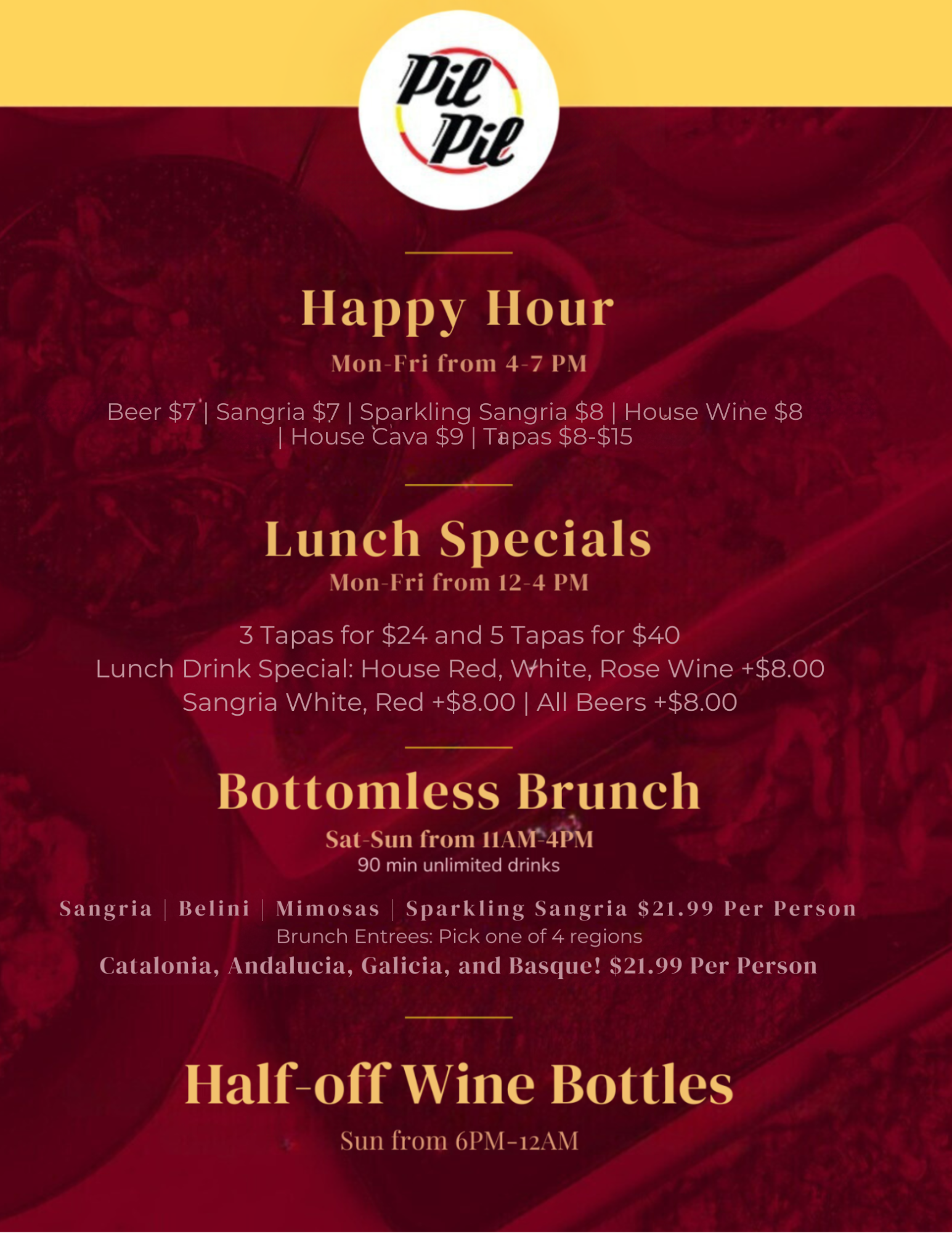 9$ Tapas | $6 Beer | $6 Sangria | $8 Wine